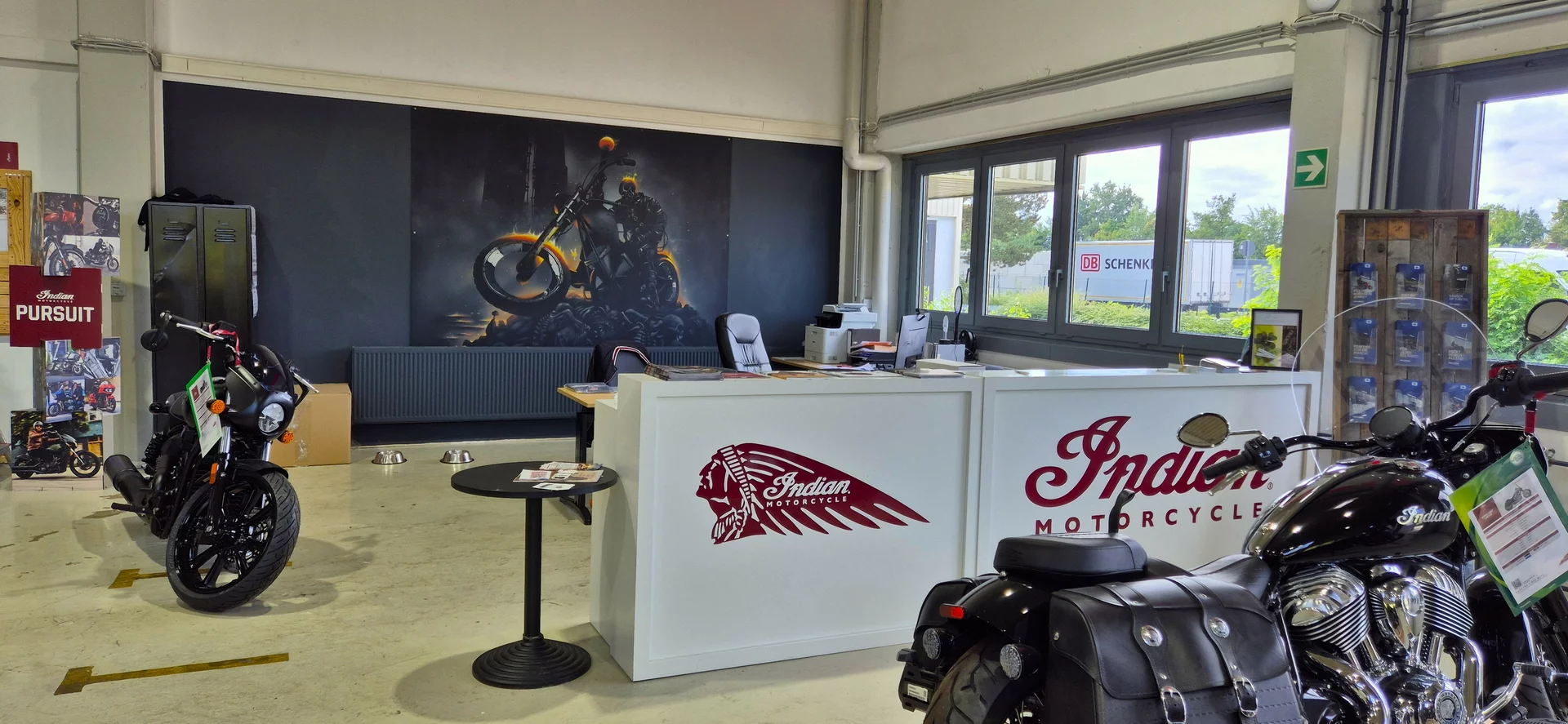 Unsere Werkstatt bietet höchste Qualität: Mit einem Indian Motorcycle Master Technician und Harley-Davidson Master Technician verfügen wir über umfassende Erfahrung im Motorrad- und Kraftfahrzeugbereich. Wir führen sämtliche Arbeiten aus – von Fahrzeugaufbau, Wartung, Reifenwechsel und Diagnose bis hin zu Instandsetzungen und individuellen Umbauten.